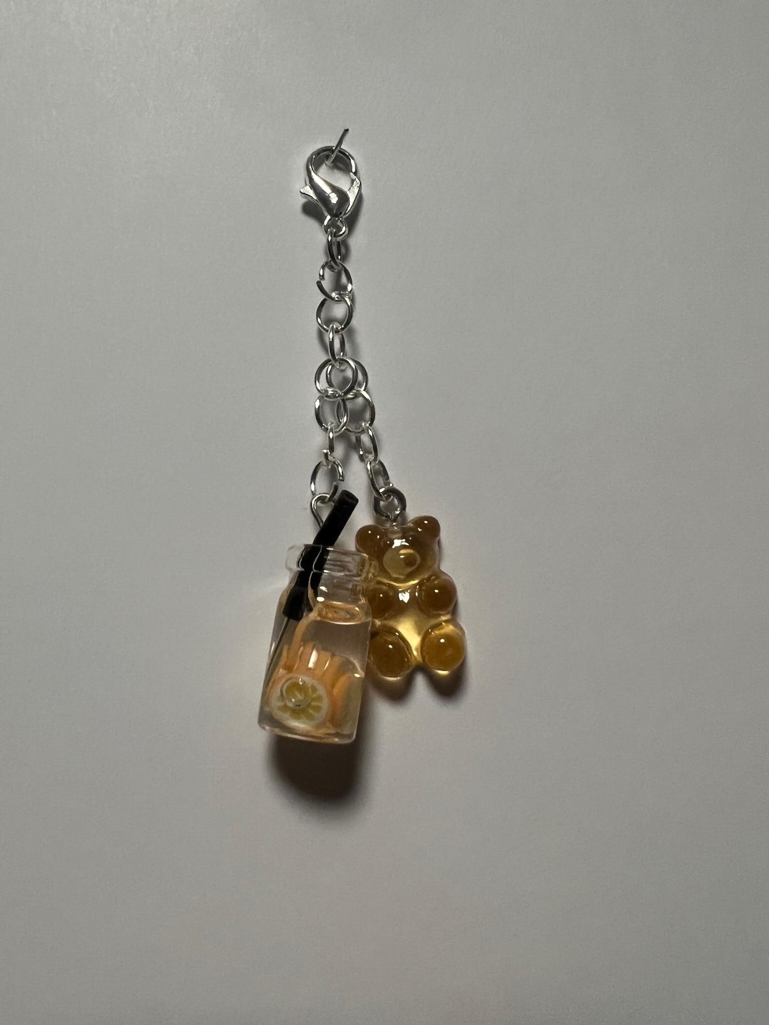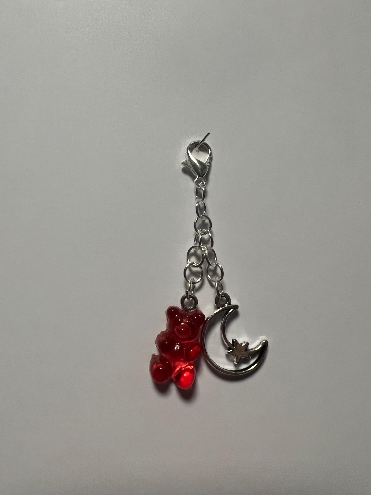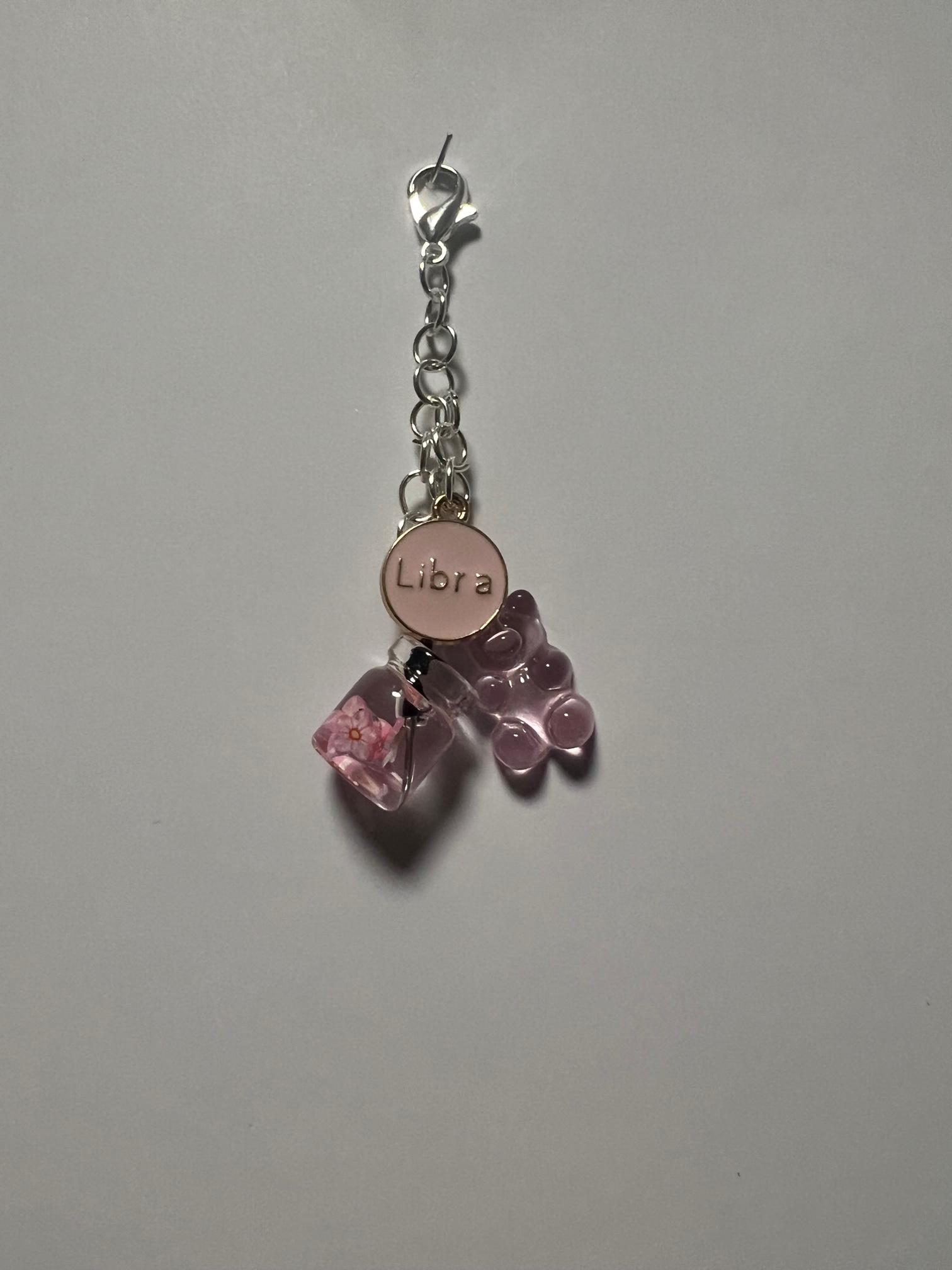 Vacker nyckelring med stjärntecken, Nallebjörn och blomma.